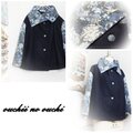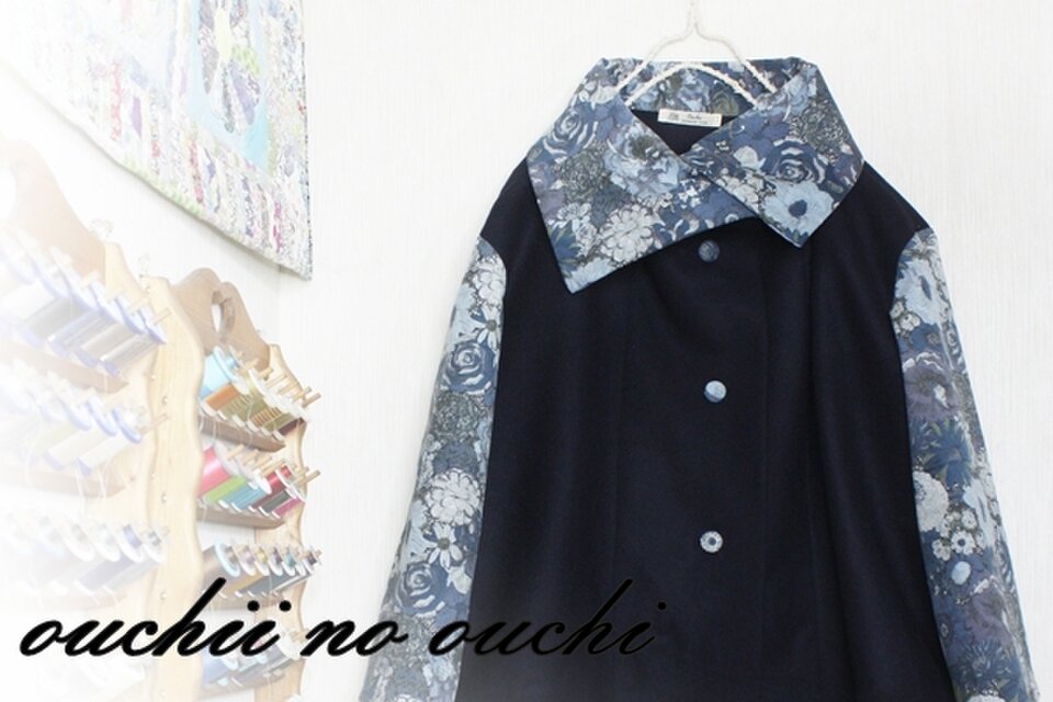 ネイビー中厚地のウールとLIBERTYリバティプリント・コーデュロイ ホビーレ限定 English Field イングリッシュ・フィールド ブルーグレー系で大き目カラーのショートコートをお作りしました。