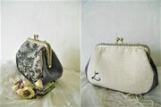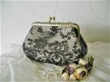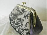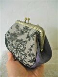 美しいアンティークブラックレースを使ったふっくらがま口ポーチ