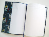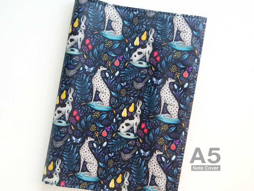 リバティの人気生地、 キャサリン・ロウ Catherine Rowe (ネイビー)のラミネート生地(つや無)でA5サイズのノートカバーを作りました。