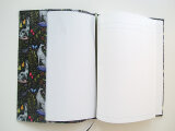 リバティの人気生地、 キャサリン・ロウ Catherine Rowe (ブラック)のラミネート生地(つや無)でA5サイズのノートカバーを作りました。