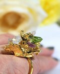 トマスゴンサガ水晶クラスターリング ペリドット、ウォーターメロントルマリン
