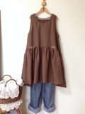 しっかりした中厚上質リネン生地でノースリーブワンピースを作りました。