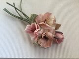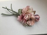 淡いピンクの色に染めたバンジーと薔薇の蕾を花束にしました。