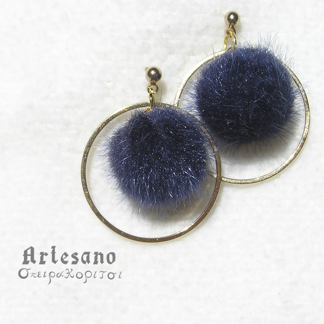 ファーとリングが動くたびにゆらゆら揺れる、秋冬にぴったりのピアスです♪