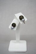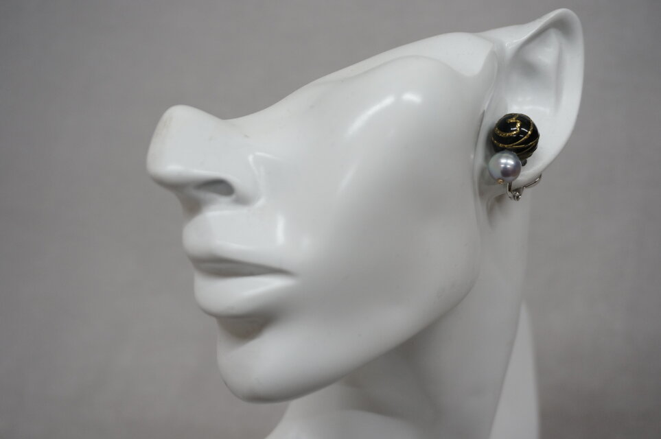 漆・木・金・アコヤ真珠φ8.8mm・SVロジウムメッキイヤリング・重量2.5g・大きさ21mm×13mm