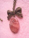 オーバル型の天然石インカローズ(ロードクロサイト)とクラシカルなメタルのリボンを組み合わせたペンダントです。