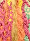 色、質感の違う5種類の糸を一度に編み込みながら作っています。