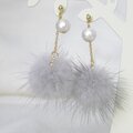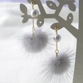 ふわふわのミンクファーとコットンパールを重ねたピアス。