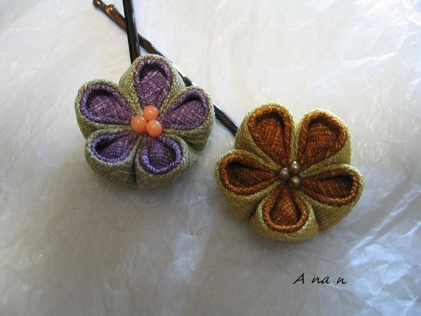 紬(つむぎ)を使ったつまみ細工2本セットです。