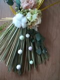 グリーンのユーカリや綿の実、実物もアクセントに。