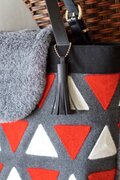 ・表の濃いグレー地に赤と白のエンボス刺繍ウールは、ヨーロッパ製。