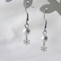 耳元で揺れる雪とパールが可愛い、さりげなく冬を楽しめるピアスです♪