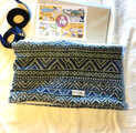 ふわふにゃ型ネックウォーマー ノルディックジャガード ブルー&マイクロパウダーフリース