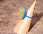 丸いカボションカットのルチルをふくりん留めします。石留め用の爪など、髪の毛や衣服に引っかかる部分の無い指輪です。