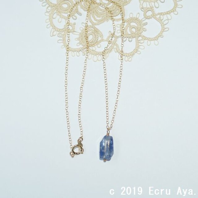 38センチのネックレスをお作りし、ボールピンに通したデュモルチェライトインクォーツを下げています。