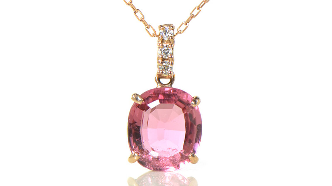 エレガントなピンクトルマリンの雰囲気に合わせて、バチカンに3粒の上質ダイヤをあしらい、
