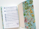 リバティの人気生地、ワイルドフラワーズ Wild Flowers(水色)のラミネート生地(つや無)でほぼ日手帳 オリジナル (A6 文庫サイズ)の手帳カバーを作りました。