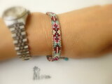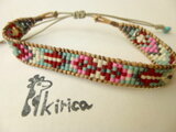 ピンクと赤の配色が愛らしい、デリカビーズの5列ブレスレット。