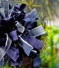 デニムと紺の生地でポンポンコサージュを作りました。
