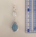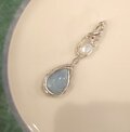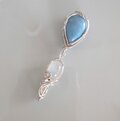 小粒ながらレインボー系のシラーがきれいに現れるレインボームーンストーンとクールな色合いのブルーオパールを繋いで揺れるタイプのペンダントトップに仕立てました。