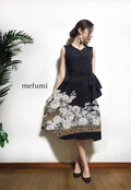 繊細で美しく、上品に奏で長れる菊の華々がモダンで上質な優美さを加味しだす、素敵なアンティーク着物をほどいて、画像デザインのフォーマルワンピースをお作りいたします。