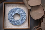陶土にオリジナルの草花の消しゴムはんこを捺したブローチです。