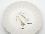 雪のチャームと小さなパールが耳元で揺れる大人可愛いピアス/イヤリングです。