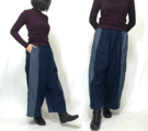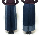 個性的で楽しく楽ちんなデニムワイドパンツ、大人の女性にジーンズ代わりにお洒落に永く着て頂けると嬉しいです。オールシーズン着用できます。