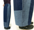 画像では見え辛いと思いますが前側片足で4枚の四角い布を十字型、後ろ側裾で切替にはいであります、前後左右で12枚になります。