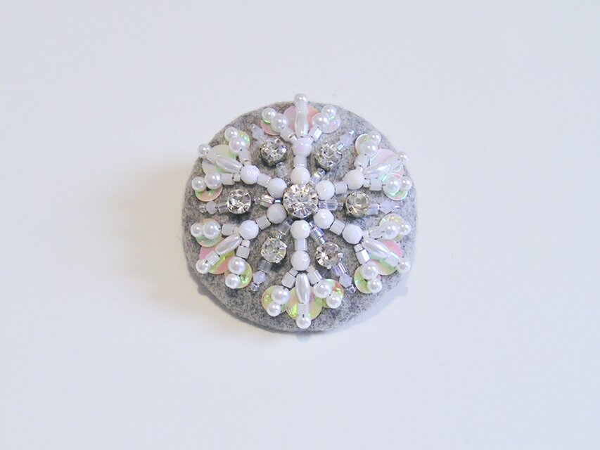 雪の結晶をモチーフにしたビーズ刺繍のブローチです。スノウバアドの冬の定番・人気商品です!