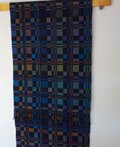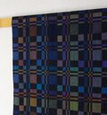 黒地に紺・紫・こげ茶・モスグリーンなどを入れて織りました。