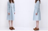 【M】ピンタック付きリネン100%爽やかな大人可愛い半袖ワンピース♪丁寧なお取引で 品物も満足でした