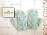 ミントグリーンのモヘア糸に内側はグレーがかった濃いめのベージュです。