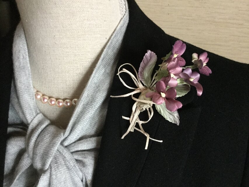 スミレを今摘んでコサージュにした雰囲気にしました。