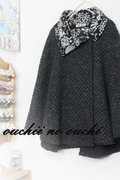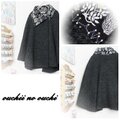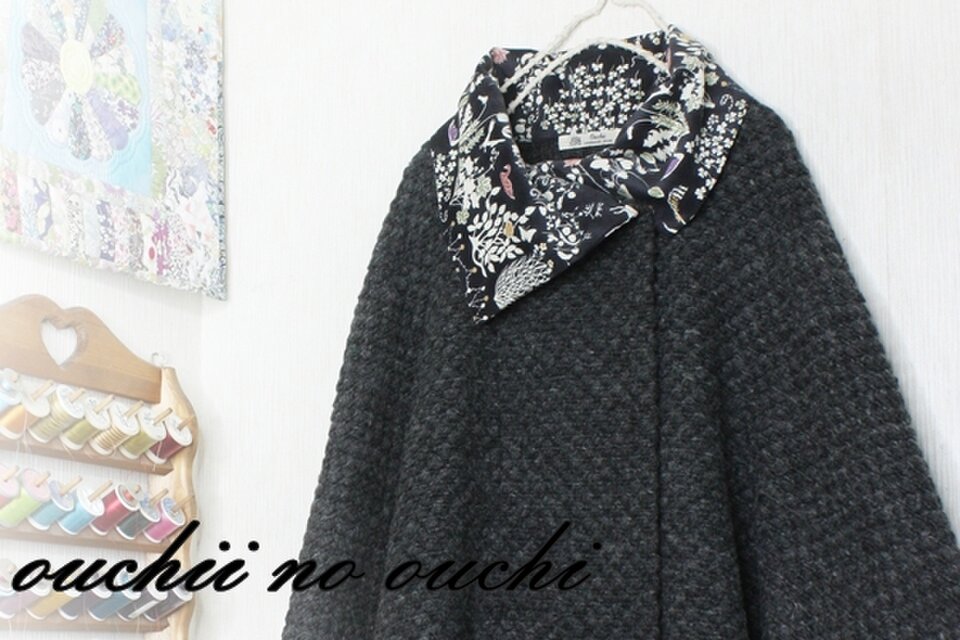 柔らかな上質ニット中厚地チャコールグレーとLIBERTYリバティプリント・コーデュロイ ヨシエブラック系で大き目カラーのポンチョをお作りしました。