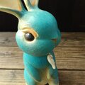 少し横を向いた立ちポーズのうさぎの置物です。羽のペンダントがアクセントです。