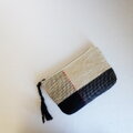 【受注製作】裂き織りのポーチ 黒×ミルクベージュ