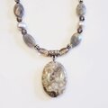 使用パーツ:フォシルコーラル スモーキークォーツ ラブラドライト 淡水パール(染) モスアゲート メタルビーズ(アンティークシルバー色) ワイヤー メッキ金具(アンティークシルバー色)