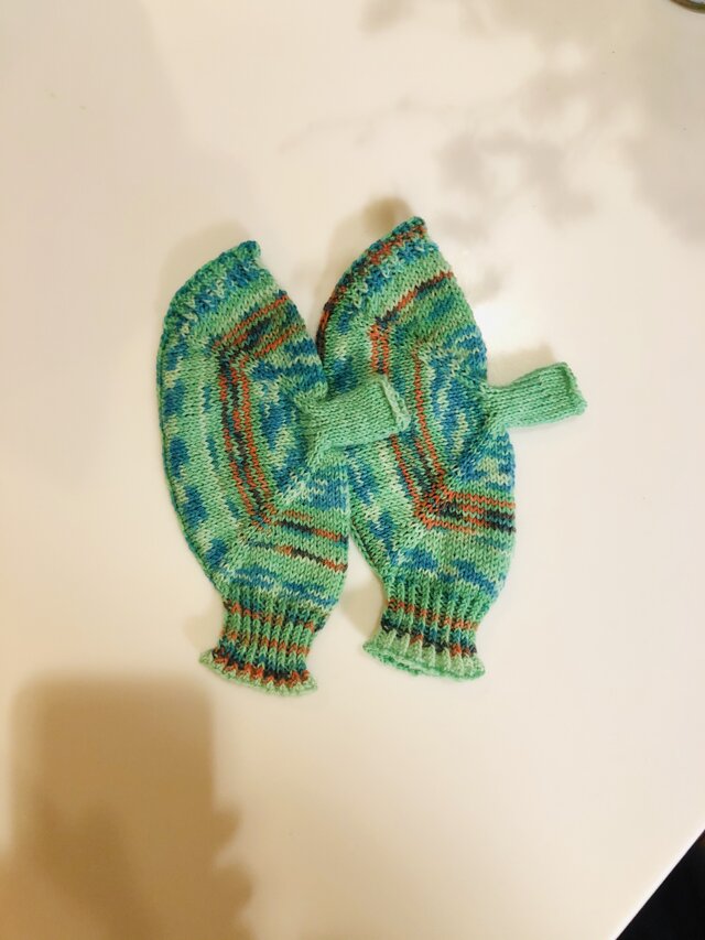 ドイツのOpal糸で一針一針、丁寧に編みました。