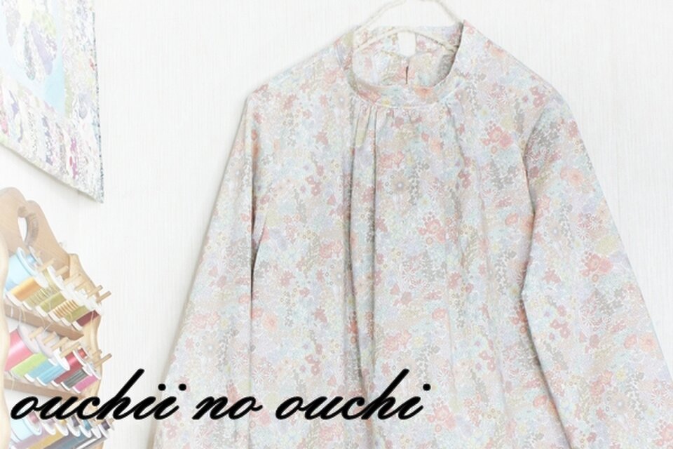 リバティタナローン Margaret Annie マーガレット・アニーで後ろループ付きスタンドカラー タックギャザーチュニックを