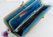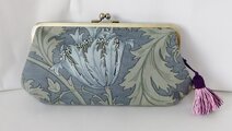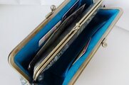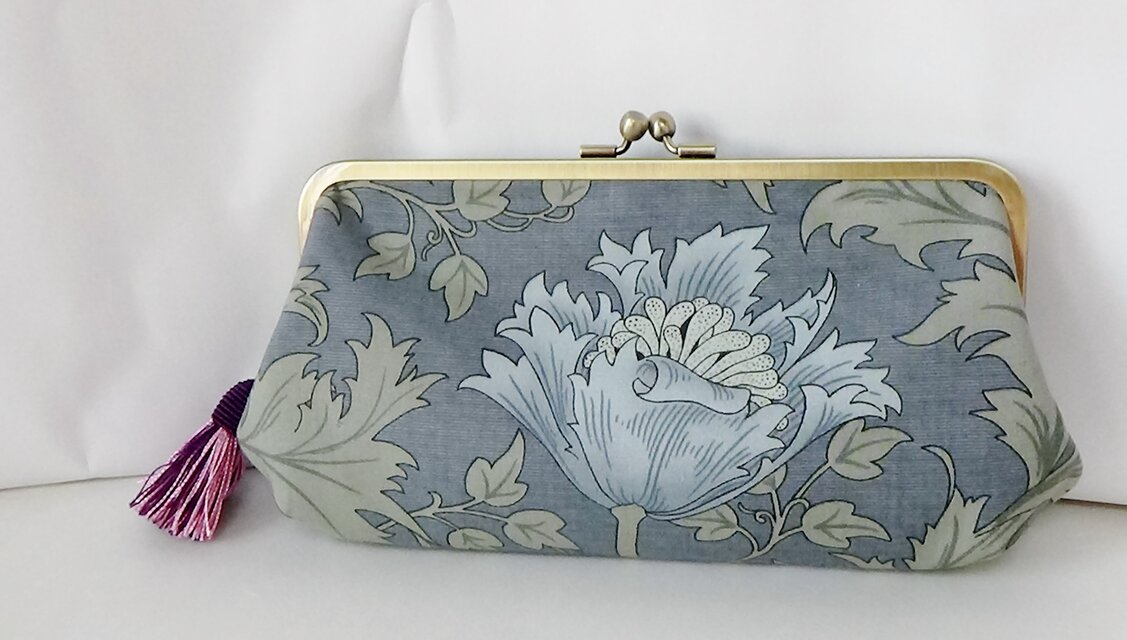 中の口金にもアネモネ柄を使い内布はハーフリネン(ターコイズブルー)を使いました