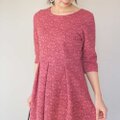 【XS-LL受注制作】アーミッシュ風シンプルワンピース◇ローズ柄ふくれジャガード(チェリーピンク) *やや厚手生地*