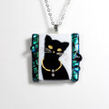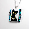 両サイドにはエメラルドグリーンのダイクロガラスを施し、黒猫を引き立てました。