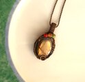 オレンジ色を含んだゴールドのシラーが現れるラブラドライトを真鍮製ワイヤーでしっかりとラッピングしました。