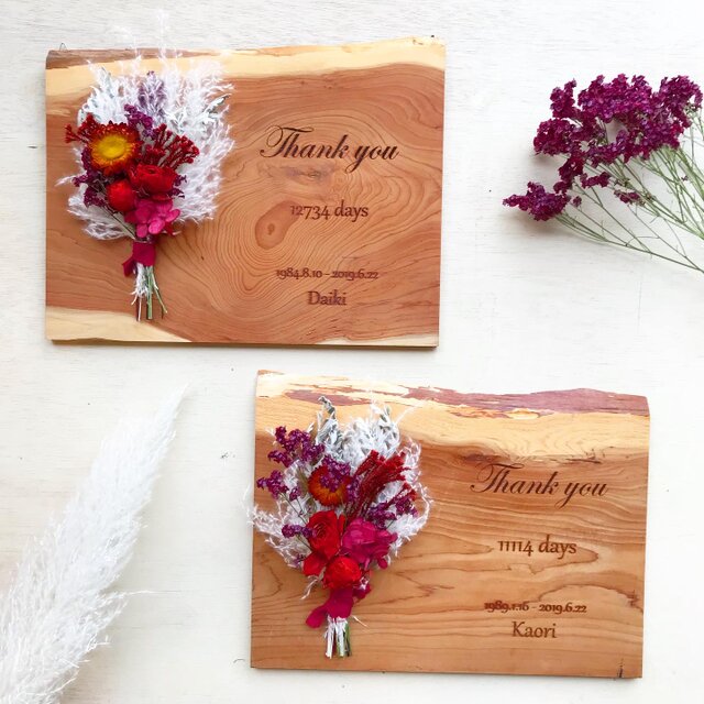 天然木のイチイの木を使ったオーダーメイドの両親贈呈品です。