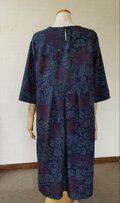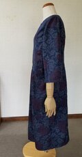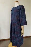 紺地の薔薇模様織り出し手織り紬着物(絹)からワンピースを作りました。