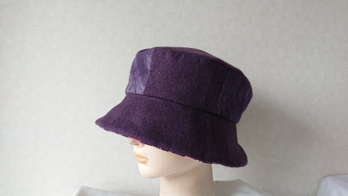 魅せる帽子☆コットン&ちりめんプリントのクロッシュ~パープル
