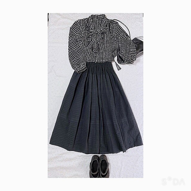 お色は濃いめのネイビーですが、織り柄が珍しいので、個性的なギャザースカートになりました。