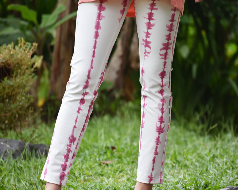 人とかぶらないタイダイ柄がおしゃれなストレッチパンツ。