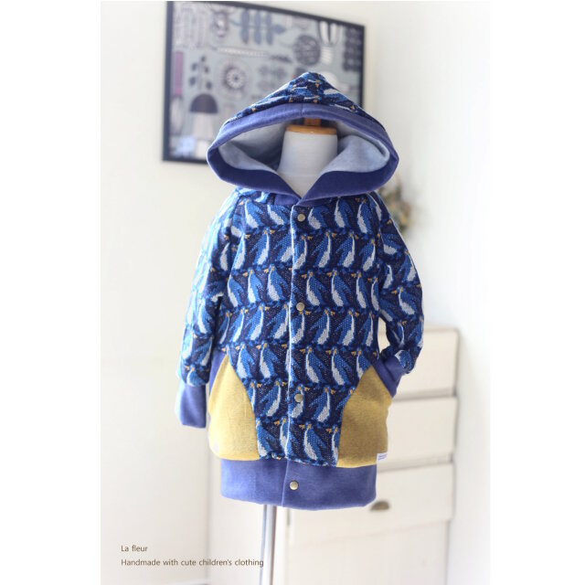 ペンギン柄のジャガードニットを使用したかわいいロングブルゾンです。